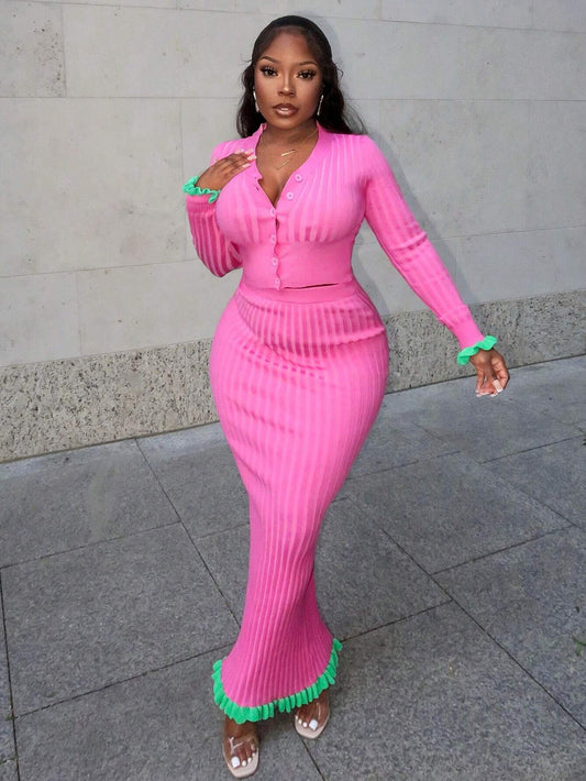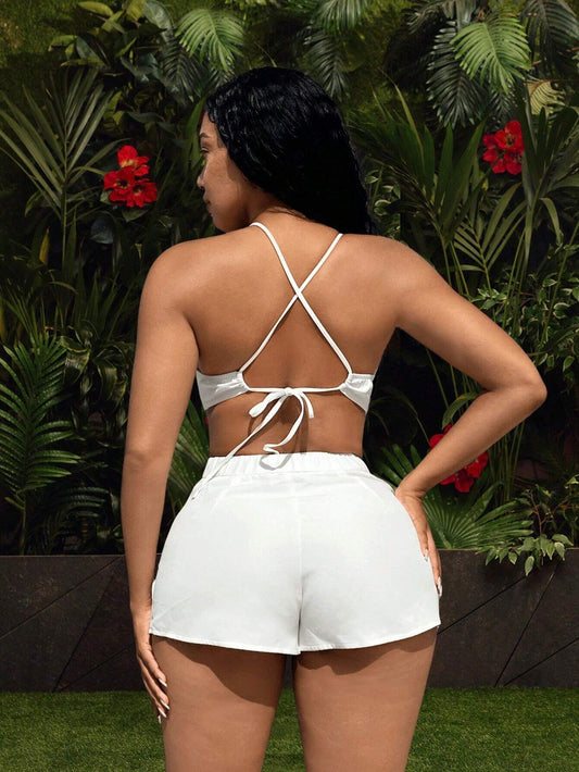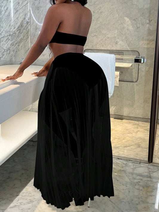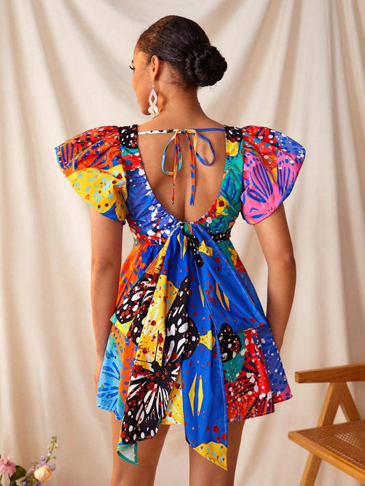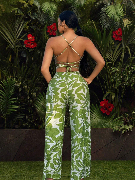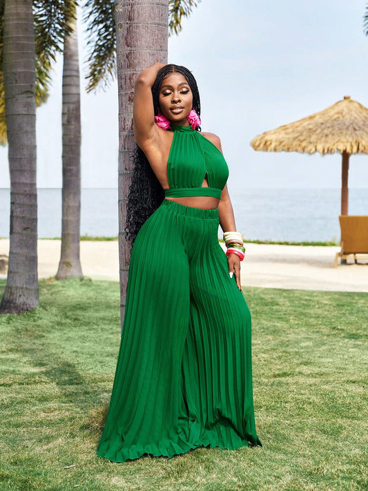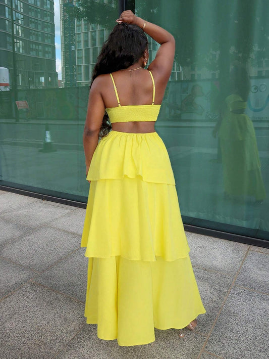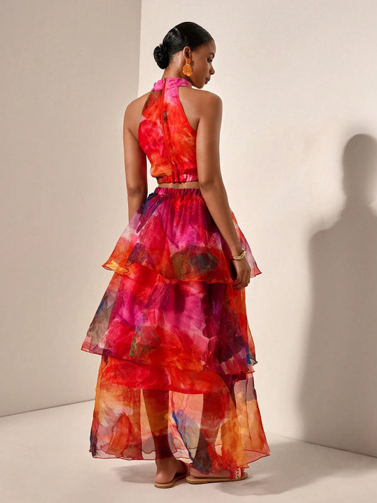 Tie-Dye Halter Top with Layered Ruffle Skirt Set