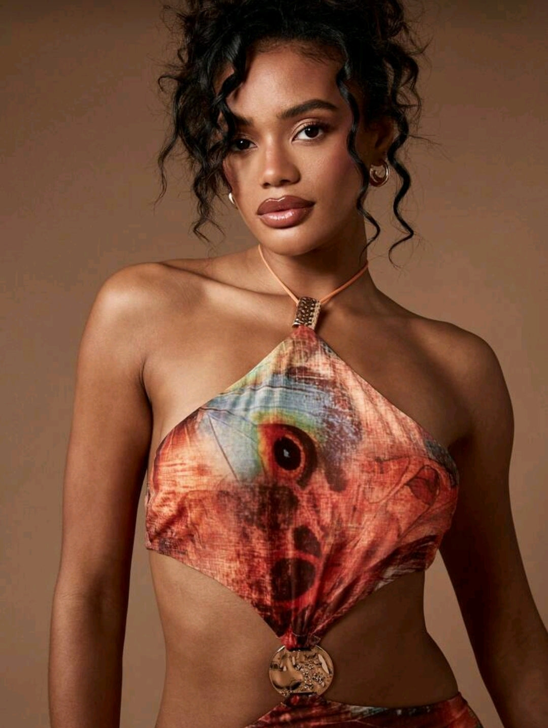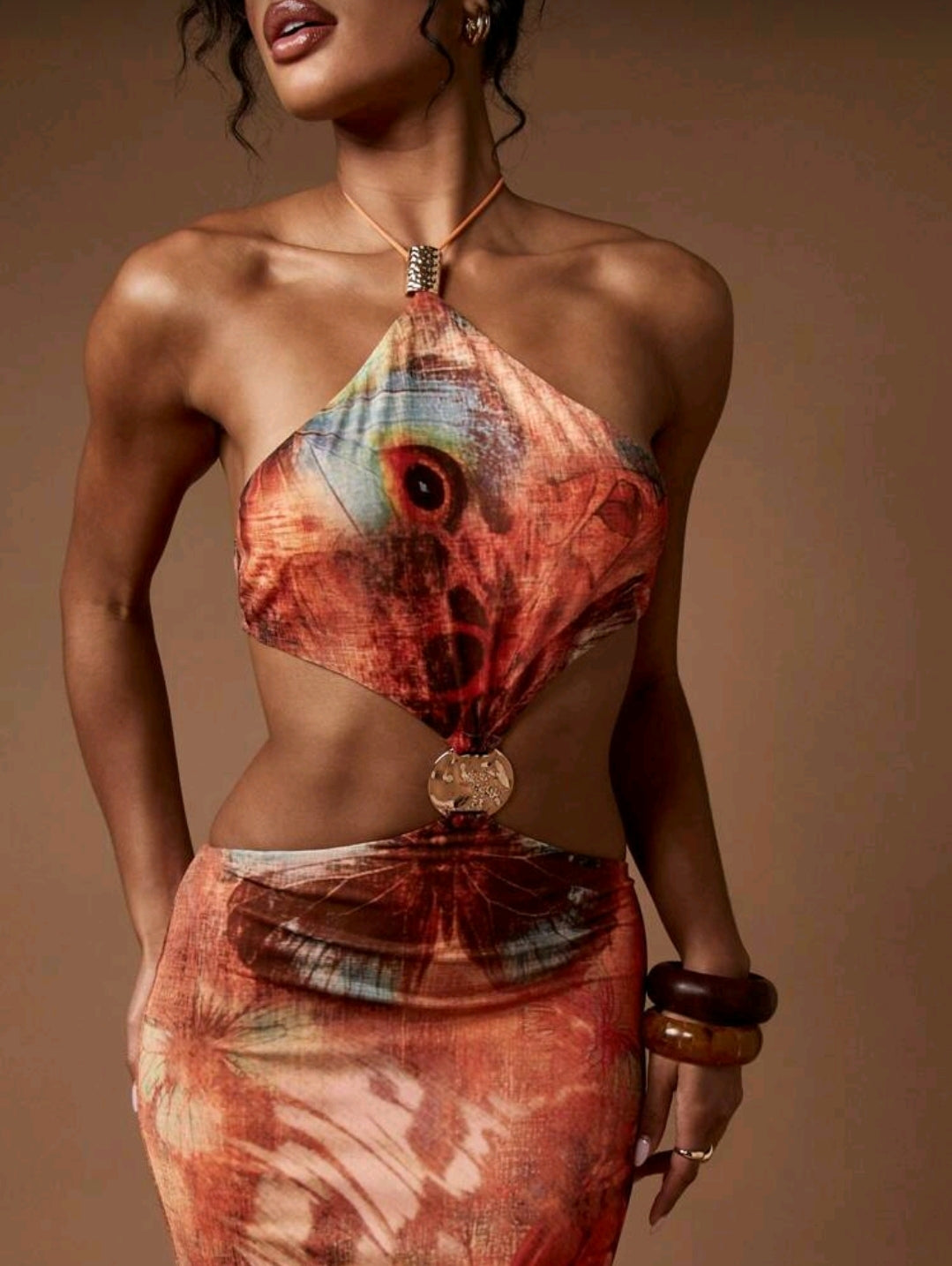 Butterfly print halter maxi dress